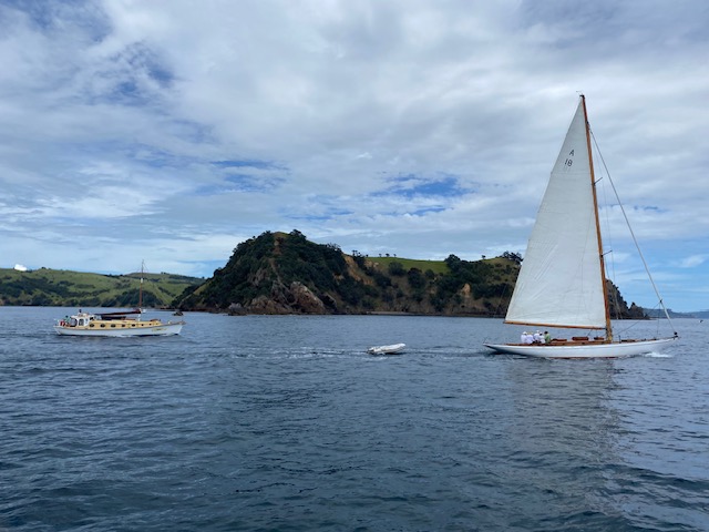Later in the afternoon, Tawera slipped away to make the most of a freshening breeze, putting on an impressive display of windward–leeward sailing, with an unfamiliar crew testing her power. Meanwhile, a few boats took the chance to explore nearby coves.